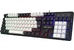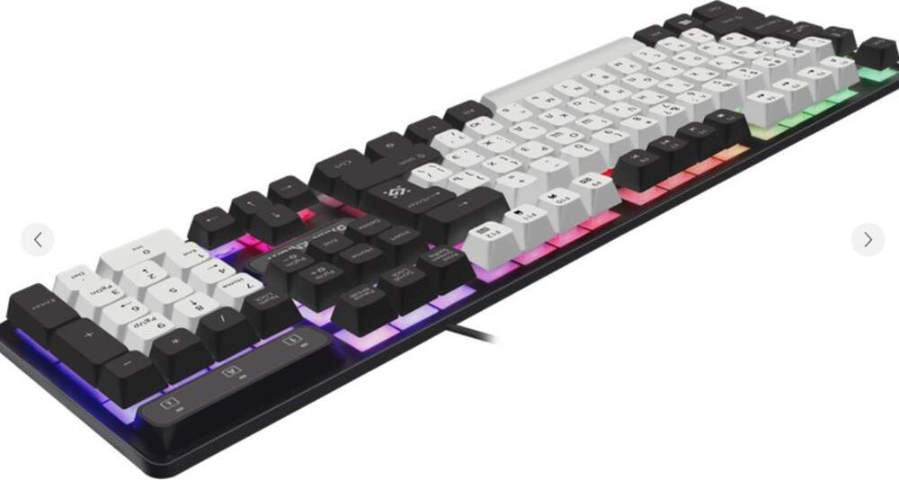 Кейкапы двух цветов Радужная подсветка 12 функциональных кнопок: - Дополнительные клавиши для управления звуком, запуска приложений «Мой компьютер» и «Калькулятор» Управление мультимедийными программами: - Активируются клавишей FN Возможность выключения подсветки Увеличенная площадь клавиш-модификаторов (Ctrl, Shift), клавиш Enter и BackSpace Влагоустойчивая конструкция клавиатуры Горячие клавиши для быстрого доступа к офисным, мультимедийным и интернет приложениям Многофункциональное программное обеспечение: - Работает только с операционной системой Windows Угол наклона клавиатуры регулируется с помощью ножек
