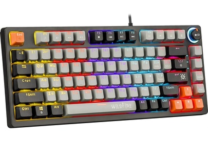 Ультракомпактная игровая клавиатура на смазанных механических переключателях TNT Pink и регулируемой радужной подсветкой. Клавиатура имеет специальную кнопку-регулятор для управления громкостью и подсветкой. Также в модели предусмотрены возможность блокировки клавиши Win, обмен функциями между клавишами WASD и стрелками и поддержка Anti-ghost для 26 клавиш.