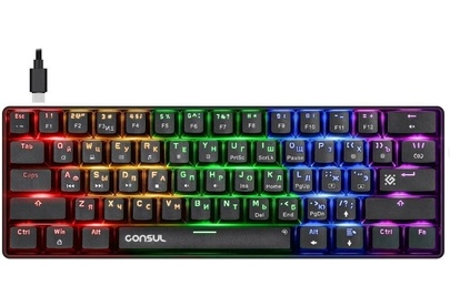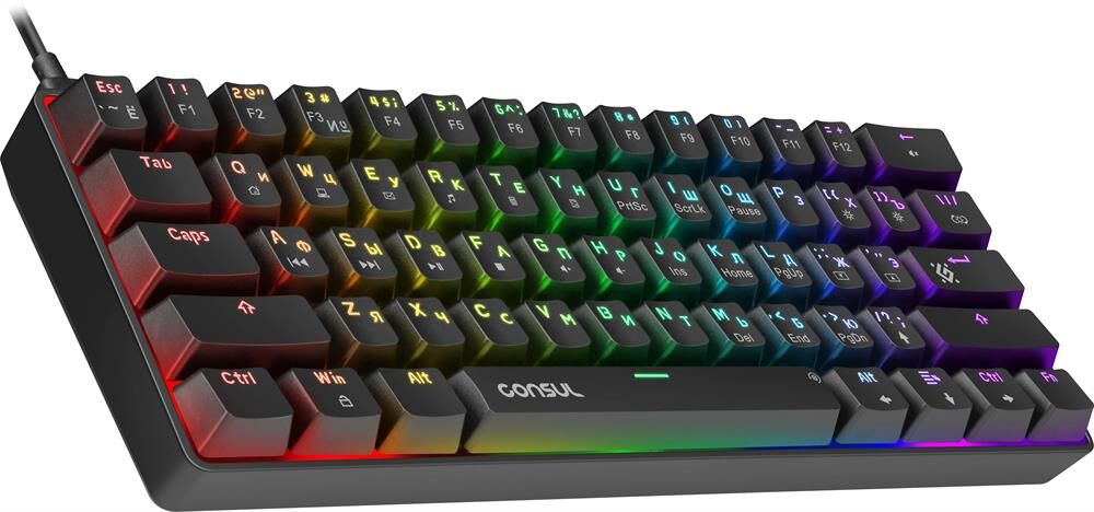 Ультракомпактная проводная механическая клавиатура на тихих красных свитчах Outemu. Ключевые достоинства модели: 19 режимов радужной подсветки, технология anti-ghost (все клавиши), возможность замены свитчей благодаря технологии Hot Swap. В комплект входят три дополнительных свитча, а также и пуллеры для кейкапов и свитчей.