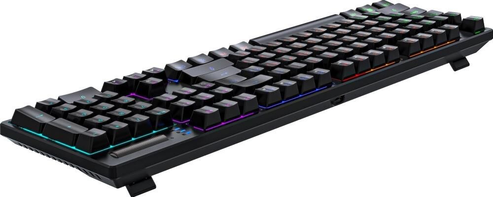 Проводная механическая клавиатура на красных линейных переключателях и регулируемой радужной подсветкой. Клавиатура имеет обширный набор функций для комфортного геймплея: блокировка клавиши WIN, обмен функциями между клавишами WASD и стрелками, все клавиши поддерживают технологию Anti-ghost.