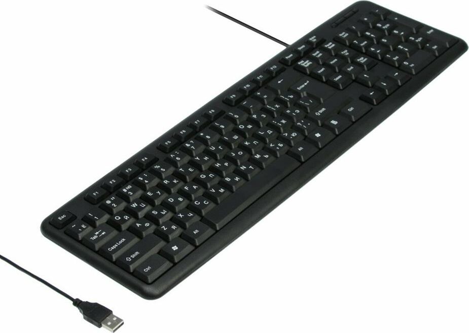 Клавиатура проводная, интерфейс подключения USB, количество дополнительных клавиш (функций) 3 клавиши управления питанием, дизайн клавиатур классический, тип клавиатуры - мембранная