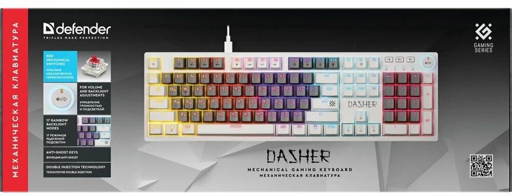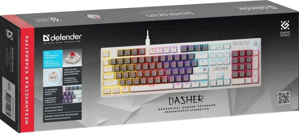 Клавиатура DEFENDER (45473) Dasher GK-472 RU,серый/белый