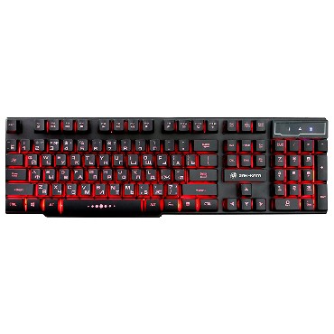 Клавиатура игровая проводная, мультимедийная, интерфейс USB, корпус черный матовый пластик, количество клавиш - 104, клавиши Windows, мультимедиа-клавиши комбинированы с F-клавишами, клавиши непрозрачные, символы просвечиваются изнутри, регулируемый угол наклона, длигна кабеля - 1,5 м.