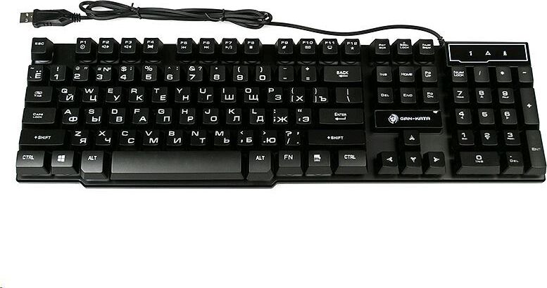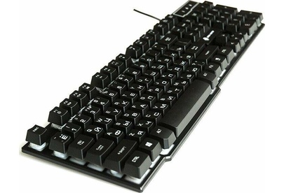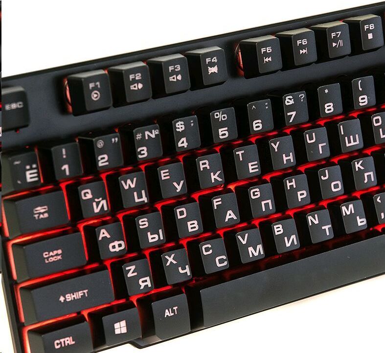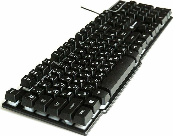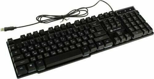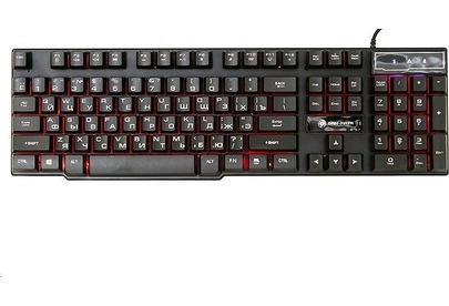 Клавиатура игровая проводная, мультимедийная, интерфейс USB, корпус черный матовый пластик, количество клавиш - 104, клавиши Windows, мультимедиа-клавиши комбинированы с F-клавишами, клавиши непрозрачные, символы просвечиваются изнутри, регулируемый угол наклона, длигна кабеля - 1,5 м.