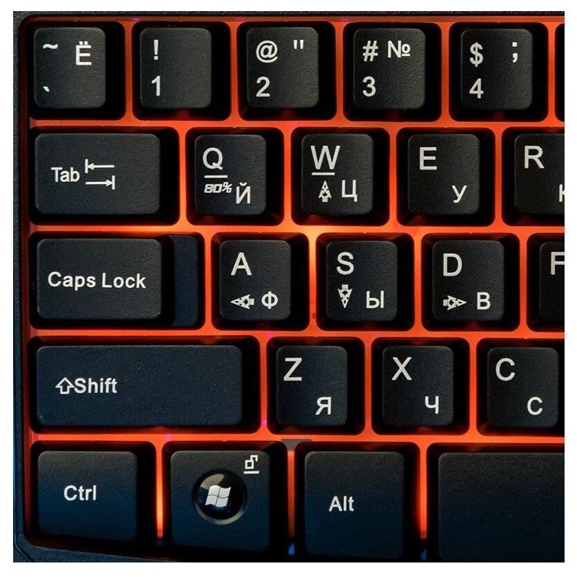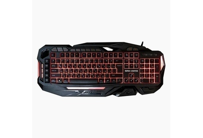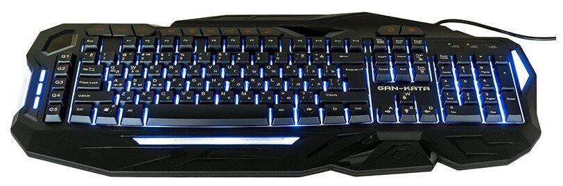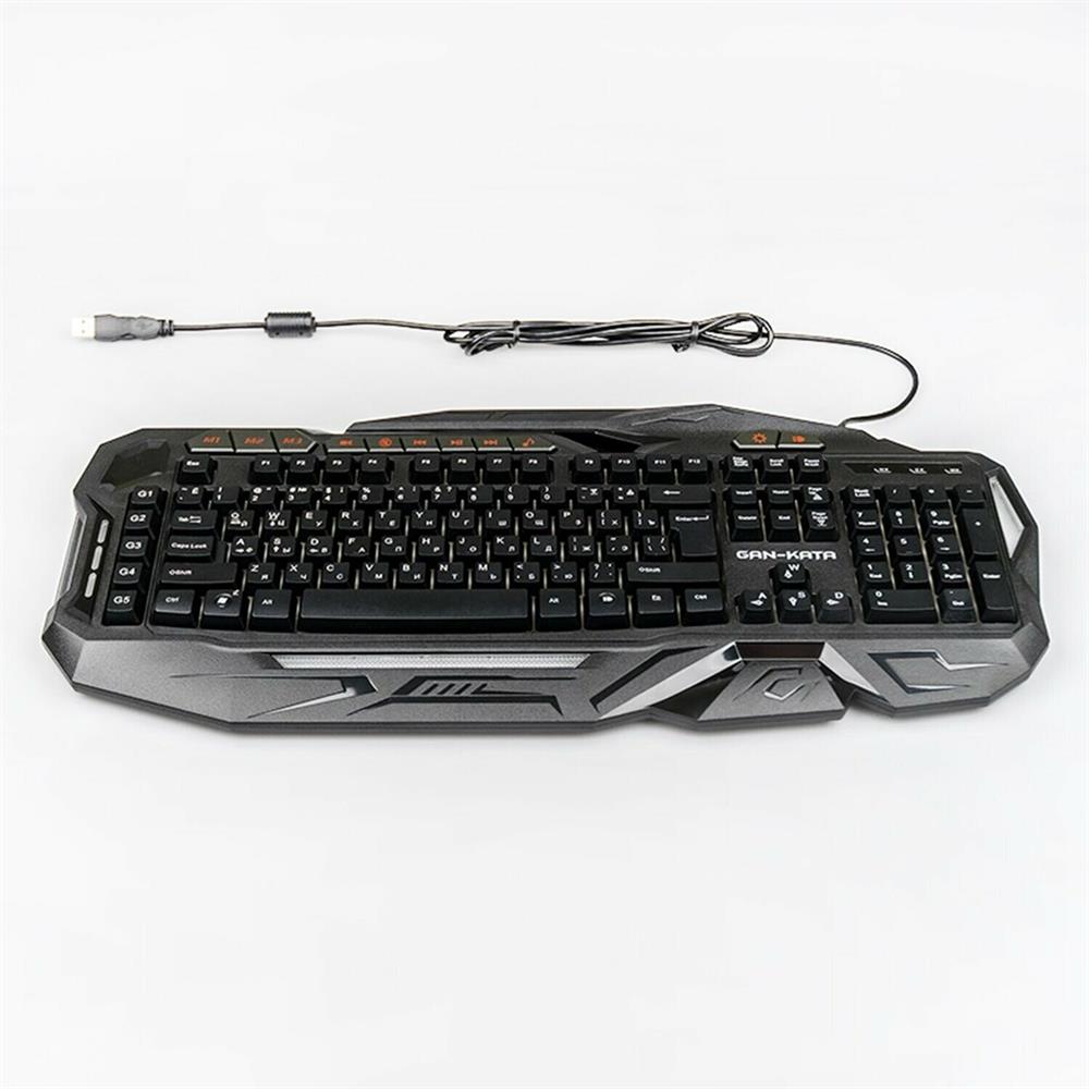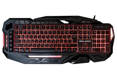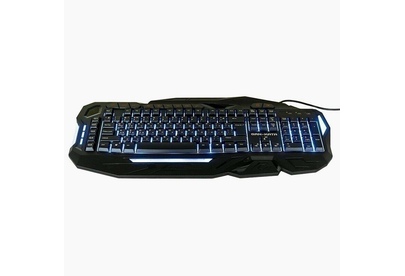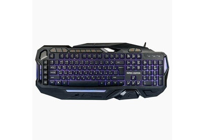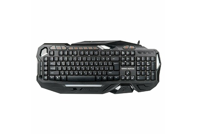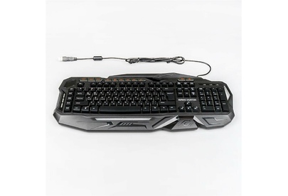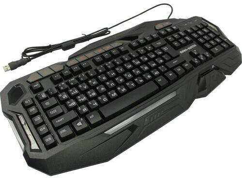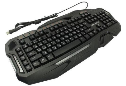 Мультимедийная игровая клавиатура с подсветкой клавиш, проводная, интерфейс - USB, корпус - черный текстурированный пластик, количество клавиш - 120, клавиши Windows, мультимедиа-клавиши - блок в верхнем ряду над F-клавишами, 3 уровня яркости подсветки, регулируемый угол наклона, кабель с ферритовым фильтром, длина кабеля - 2,0 м, габаритные размеры (В*Ш*Г, мм) - 515*215*32