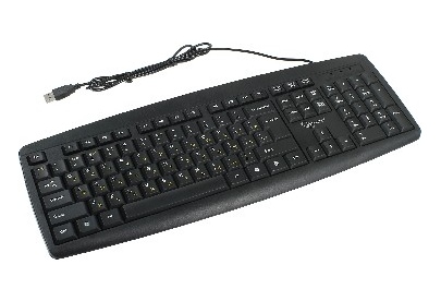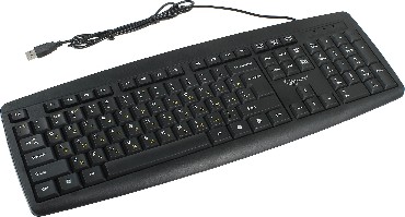 Проводная клавиатура, классическая раскладка, полноразмерная клавиша «Enter» ,модель с контрастными желтыми буквами, количество клавиш: 104 шт., интерфейс: USB, длина кабеля: 1.45 м