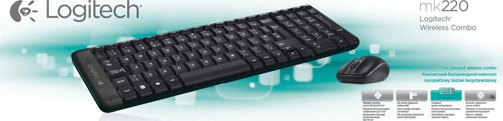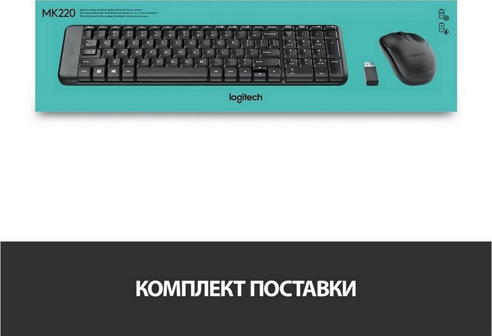 Клавиатура LOGITECH Комплект (клавиатура+мышь) MK220, USB, беспроводной, с гравировкой, черный [920-003161]
