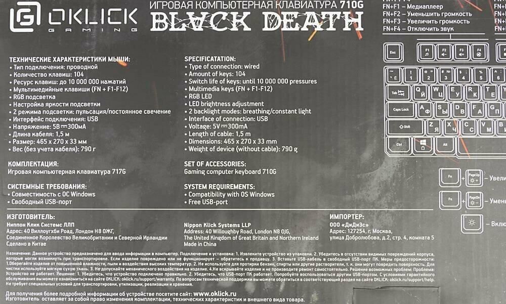 Клавиатура OKLICK 710G BLACK DEATH черный/серый