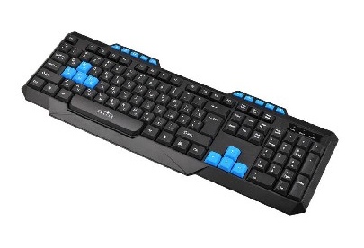 Клавиатура игровая, проводная, мультимедийная, количество клавиш: 114, дополнительных - 10, часто используемые клавиши - выделены голубым цветом, интерфейс USB, корпус клавиатуры - имеет изогнутую форму, ножки прорезинены, длина кабеля: 1,5 м, размер: 450 x 155 x 25 мм.