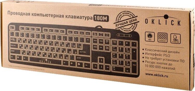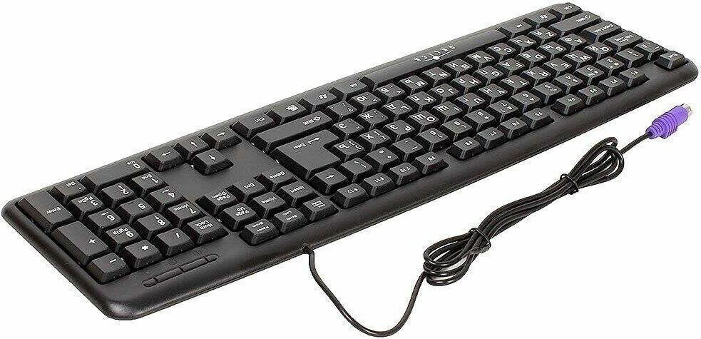 Клавиатура проводная, интерфейс PS/2, количество клавиш - 104, материал корпусапластик, длина кабеля - 1,5 м.