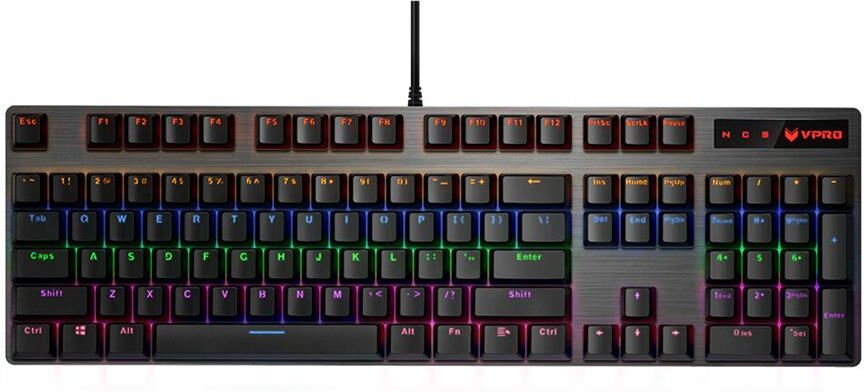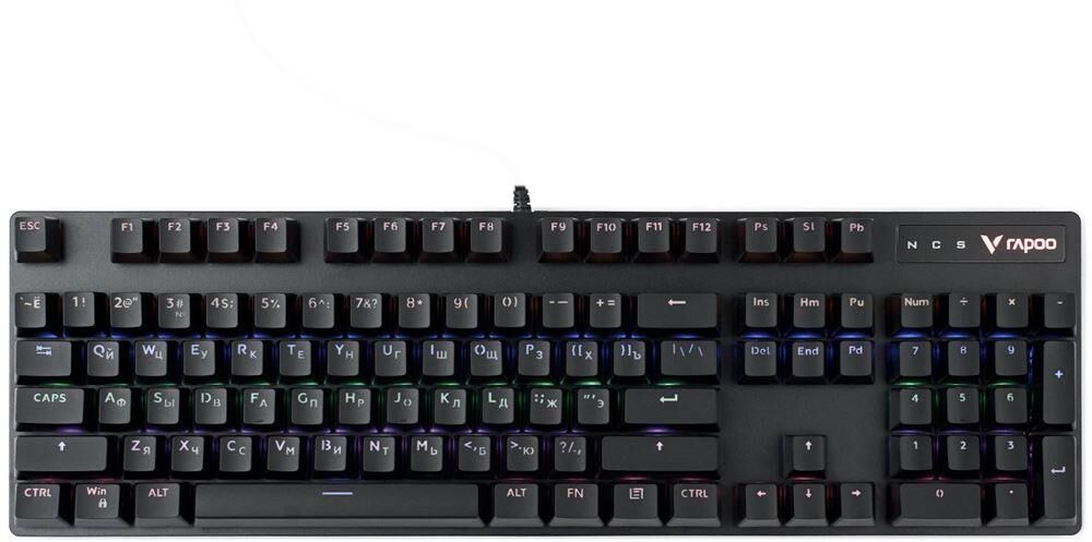 • Металлическая поверхность корпуса • Конструкция с защитой от проливания воды • Механический переключатель Rapoo с высокой скоростью срабатывания • Индивидуальная цветная подсветка с 5 настройками освещенности • Срок службы клавиш 60 миллионов нажатий • Мультимедийные горячие клавиши 12 • Подходит для опытных геймеров
