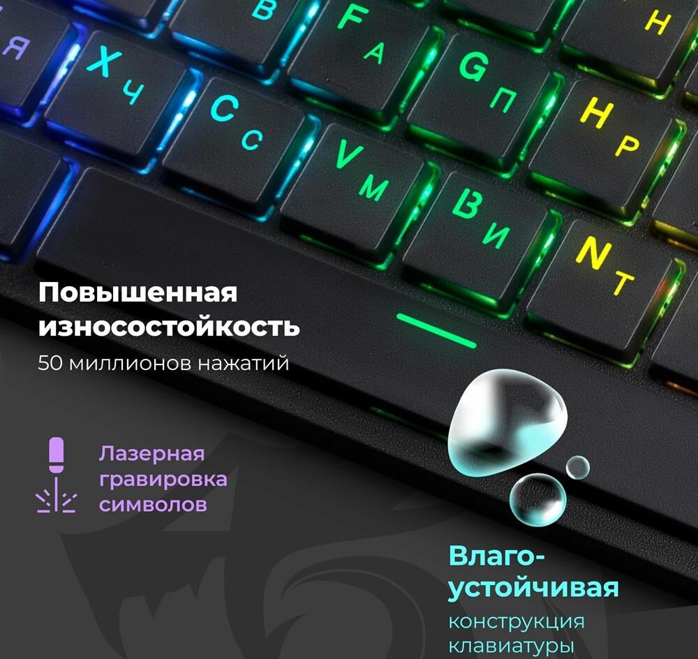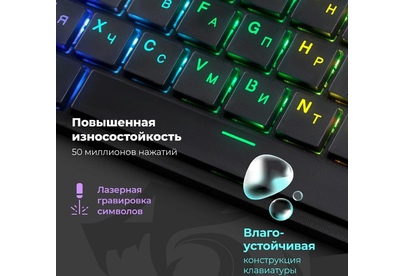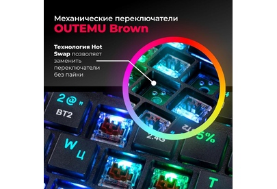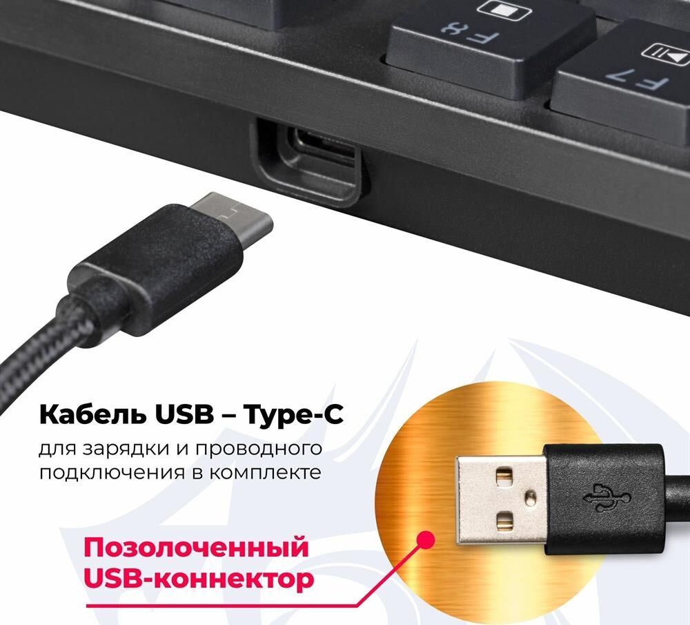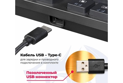Ультратонкий дизайн 3 режима подключения - Проводное подключение, беспроводной режим Bluetooth, беспроводное подключение по радио каналу 2.4 ГГц Высокая энергоэффективность Тихий ход клавиш обеспечивает практически бесшумную работу Повышенная износостойкость Позолоченный USB-коннектор - Позолоченное напыление обеспечивает лучшую проводимость, меньшее сопротивление и окисляемость RGB подсветка Индикатор заряда аккумулятора Встроенный аккумулятор Совместимость с ПК, ноутбуками, игровыми консолями, смартфонами, планшетами