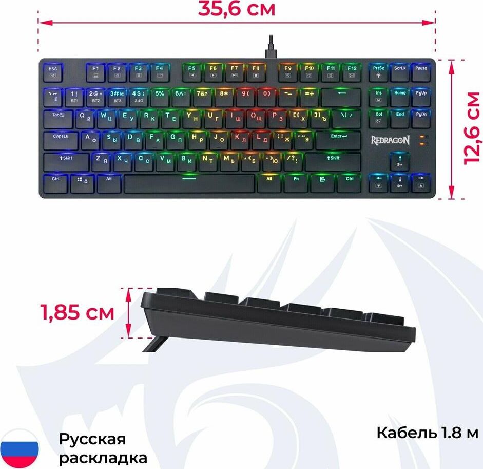 Клавиатура REDRAGON (70505) Anubis RGB,тонкая,тихая,87клавиш,б.п.