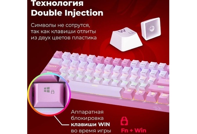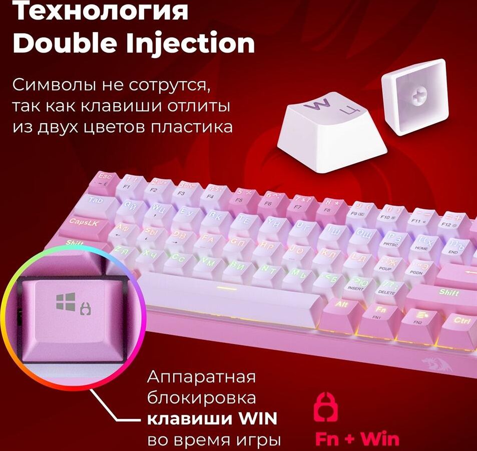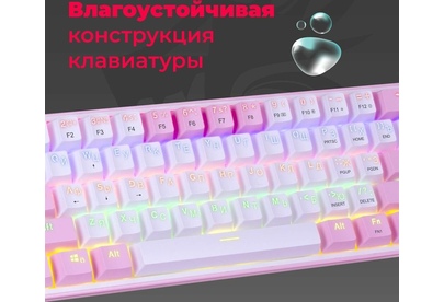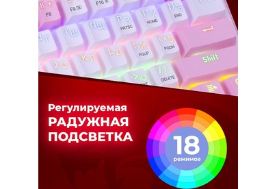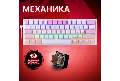 Клавиатура REDRAGON (70672) Fizz Радужн,61 клав,тих,бело-розов.