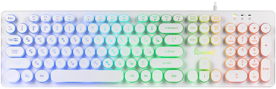 Сочетает в себе качества игровой и офисной модели: эргономичный корпус, мембранные клавиши. Клавиатура идеально подходит для быстрого набора текста. Увеличенное расстояние между клавишами позволяет легко очищать устройство от пыли и грязи. 3 режима многоцветной подсветки с опцией настройки яркости и отключения, а также выбор между постоянной и мерцающей подсветкой. Мультимедийные клавиши позволяют регулировать громкость и управлять воспроизведением музыки. Увеличенный до 10 млн ресурс нажатий. Питание USB