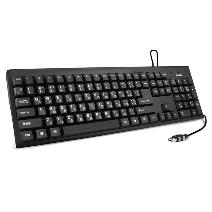 Клавиатура проводная, интерфес USB, количество клавиш - 104, влагоустойчивая, традиционная раскладка, комфортный , тихий ход, длина кабеля - 1,5 м.