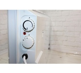 Вид термостата механический термостат. Количество режимов нагрева 2. Нагревательный элемент литой алюминиевый Х-образный. Напряжение 230 В. Регулировка мощности нагрева 500/1000. Степень защиты IP20. Цвет корпуса белый. Рекомендуемая площадь обогрева, м² 15.