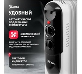 Масляный радиатор, 5 секций, 550х250х120мм, 3 уровня мощности 1000/600/400 Вт, термостат "Opti-Heat"- с функцией автоматического поддержания температуры, защита от перегрева, устойчивая конструкция ножек, покрытие увеличивает теплоотдачу.
