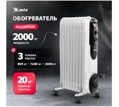Масляный радиатор "Оasis Pro" модель OS-20. Напряжение 220 В Max мощность 2 кВт Рекомендуемая площадь 20 м? Габариты без упаковки 550х240х405 мм Цвет белый Количество режимов нагрева 3 Управление механическое Встроенный тепловентилятор нет Количество секций 9 Серия OS Вес нетто 8.44 кг Отключение при опрокидывании нет Дисплей нет Наличие защитного кожуха нет Преимущества Световой индикатор работы. Регулируемый термостат. Широкие поперечные перегородки. Увеличенная жесткость секций. 3 ступени регулировки мощности нагрева. Легкость перемещения прибора.