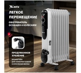 Радиатор масляный серия Fusion Мощность 2000 Вт 9 секций Компактный типоразмер секций Размеры секции (Ш*В) 120*500 мм Защита от перегрева Световой индикатор работы Регулируемый термостат Регулировка мощности Колёсики для перемещения Устройство для намотки сетевого шнура Гарантия 12 месяцев Напряжение 220-240В 50Гц