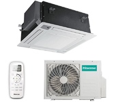 Специально разработанный для кассетных полупромышленных кондиционеров Hisense дизайн декоративной панели позволяет идеально вписать внутренний блок в любое помещение. Модельный ряд кассетных внутренних блоков состоит из компактных моделей с панелью 650х650 (18k) и с панелью 950х950 (24-60k). Наличие встроенного дренажного насоса, способного поднять конденсат жидкость на высоту до 1,2 м, позволяет легко организовать отвод воды и облегчить монтаж. Все модели серии укомплектованы пылевым фильтром и ИК-пультом. Опционально доступен проводной пульт управления. Расположенный на декоративной панели блок индикации режимов работы позволяет пользователю быстро определить, в каком режиме работает кондиционер. Кроме этого, индикация загрязнения фильтра напоминает о времени его очистки. Вентилятор, использующийся во внутренних кассетных блоках Hisense, имеет специальную оптимизированную форму. Благодаря этому значительно снижается уровень шума и уменьшается турбулентность воздушного потока. Так же есть возможность организ
