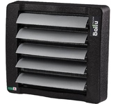 Водяной тепловентилятор Ballu BHP-W3-15-LN – прибор для обогрева коммерческих помещений высотой более 3 метров. Тепловая мощность прибора от 8 до 18 кВт в зависимости от режима производительности и температуры теплоносителя. Максимальная рабочая температура теплоносителя 150С при давлении 16 бар, что позволяет использовать в качестве теплоносителя пар и перегретую воду. Благодаря шести полюсному двигателю водяной тепловентилятор обладает низким уровнем шума и не требует больших затрат на регулировку режимов работы. Осевой вентилятор диаметром 400 мм. создает воздушный поток длиной 12 метров и обеспечивает максимальную производительность до 2800 м3/ч. Корпус прибора изготавливают из вспененного полипропилена, что делает его легким и ударопрочным. При этом за счет пористой структуры он блокирует шум работающего двигателя. Водяной тепловентилятор устанавливается на стены, колонны или потолок при помощи кронштейна, который входит в комплект поставки. Кронштейн позволяет регулировать угол наклона тепловентилятор в