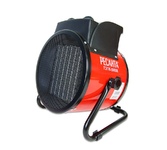 Тепловая пушка, мощность нагрева 2,5/5,0/0 кВт, керамический нагревательный элемент (PTC), производительность 300 м3/ч, 220В, 50Гц, размеры прибора (ШхВхГ) 250х225х235 мм, вес 3,4кг.