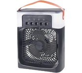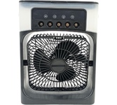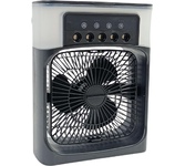 Настольный вентилятор с функцией увлажнителя и таймером выключения Диаметр: 15 см Мощность: 10 Вт 3 скорости Объём: 600 мл 3 режима распыления воды 7 цветов подсветки Встроенный таймер Отсек для аромамасел USB(Туре-С) Цвет ЧЕРНЫЙ Размер упаковки: 34,5*22*38см Сеть: 5В,2А