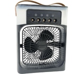 Настольный вентилятор с функцией увлажнителя и таймером выключения Диаметр: 15 см Мощность: 10 Вт 3 скорости Объём: 600 мл 3 режима распыления воды 7 цветов подсветки Встроенный таймер Отсек для аромамасел USB(Туре-С) Цвет СИНИЙ Размер упаковки: 34,5*22*38см Сеть: 5В,2А