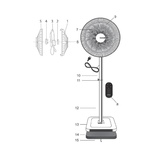 3 алюминиевые лопасти Диаметр лопастей 355 мм (14”) 3 скорости работы вентилятора Производительность 3800 м3/ч Вертикальная регулировка воздушного потока Устойчивая подставка Резиновые втулки и ножки подставки для снижения виброшума