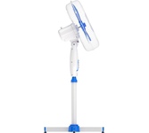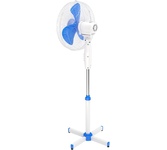 40Вт, напольный, механ. управление с пультом, 3 режима работы, защитная решетка: диаметр 40 см (16"), 102 прута, 3 лопасти диаметром 35 см, крестообразная подставка. Регулировка: вертикальная, горизонтальная, по высоте (макс. 1,3 м). Поворот на 90°. Таймер на 7,5 часов. Длина шнура 1,6м. Срок службы прибора: 5 лет. Цвет: бело-серый.
