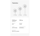 Серия Elegance. Диаметр 16 . Высота 1,25м.Подставка 62*62 см . Лучевая решетка. 3 скорости . Таймер 4 часа . Пульт ДУ. Режим "Natural" - имитация бриза. Режим "Sleep" . Регулировка наклона. Функция поворота . Мощность 45 Вт.