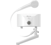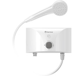 Безнапорный проточный водонагреватель Одна точка водозабора Медный ТЭН Материал колбы – полиамидное стекловолокно Модели различной максимальной мощности 3 500 Вт, 5 500 Вт, 6 500 Вт Рабочее напряжение 230 В Производительность при дельте нагрева на 25°С 2 литра в минуту для моделей мощность 3 500 Вт, 3,1 литра в минуту для моделей мощностью 5500 Вт, 3,7 литра в минуту для моделей мощностью 6500 Вт Номинальное давление 0,1 МПа Класс пылевлагозащиты IP24