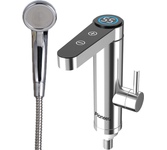 Проточный водонагреватель - смеситель С ДУШЕМ. Цифровой дисплей; Постоянный контроль температуры 30–55 °C; Корпус и ручка из нержавеющей стали; Напряжение питания: 220–240 В; Частота питания: : 50 Гц (60 Гц); Номинальная мощность: 3–3,6 кВт; Расход горячей воды: 2–2,5 л/мин; Рабочее давление: 0,04–0,6 МПа; Температура горячей воды: 30–60 °C; Степень водонепроницаемости: IPx4; Скорость потока воды: от 1 до 4 объемов в час; Длина кабеля питания: 1,5 метра