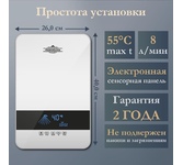 Проточный водонагреватель PRIMOCLIMA AQUA 8.5 кВт подает горячую воду температурой до 55°С за 5 секунд. Электрическая часть полностью изолирована от воды и влаги системой сухого ТЭНа. Водонагреватель выдерживает давление 12 бар. Встроенная функция самодиагностики оповещает о неисправностях и автоматически отключает прибор при срабатывании защиты. Сенсорное управление с сохранением пользовательских настроек позволит быстро включить нужный режим. Лицевая панель из закаленного стекла обеспечивает прочность прибора и эстетичный вид интерьера. Настенный водонагреватель имеет компактные размеры и подходит для ежедневного использования на кухне или в ванной комнате. Гарантия 2 года