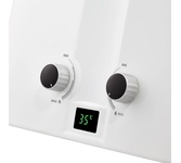 Обладая производительностью 10 л/мин., Самая тихая работаПрактически бесшумная работа прибора не будет привлекать к себе внимание, отвлекая вас от дел. Для тихой работы в устройстве установлена уникальная конструкция горелки с продольным расположением форсунок и ГВУ. Современный LED-дисплейДля контроля за уровнем температуры воды на лицевой панели колонки установлен LED-дисплей. С его помощью вы сможете регулировать степень нагрева воды с точностью до 1 С. АвторозжигСовременный удобный автоматический электронный розжиг сам включает горелку, как только вы открываете кран с горячей водой. Это обеспечивая безопасное появление искры и значительную экономию газа.