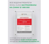 Водонагреватель электрический накопительного типа объем бака 50л, мощность 1500Вт, Антибактериальное покрытие внутреннего бака. DUO BIO GLASS Technology, Высокая скорость нагрева воды. Высококачественный медный нагревательный элемент ROYAL Clima Cu+, Плавная регулировка желаемой температуры нагрева воды в баке, Эмалевое покрытие бака, устойчивое к царапинам и ржавчине, Компактность и легкая установка в любом помещении. Максимальная температура нагрева воды 75 °C Внутреннее покрытие бака стеклокерамика Время нагрева воды до максимальной температуры 70 мин. Потребляемая мощность 1.5 Вт Напряжение сети 220 Управление механическое Системы защиты от включения без воды, от перегрева, предохранительный клапан Дополнительная информация максимальное давление воды 7 бар Режимы и функции Индикация нагрева Монтаж Установка настенная, Вертикальная Способ установки вертикальная Подводка нижняя Размеры и вес Глубина 248 мм Ширина 458 мм Высота 930 мм Вес 23.5 кг