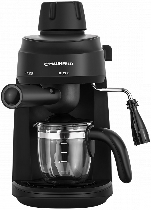 Стильный внешний вид и небольшие размеры выделяют кофемашину маунфилд MF-733BK среди других. Данная модель относится к рожковому типу и бюджетному ценовому сегменту. Механическое управление, простое и надежное, осуществляется с помощью поворотных переключателей. Материал корпуса пластик с металлическими вставками, повышающими прочность изделия. Кофейник выполнен из стекла. Аппарат работает на молотом сырье. Объем резервуара для воды составляет 1500 мл. Максимальная мощность равна 870 Вт. Весит устройство всего 1,5 кг, что позволит разместить его абсолютно в любом удобном для вас месте. Производитель предоставляет гарантию сроком один год. Во время включения прибора загорается световой индикатор. Встроенный капучинатор расширяет ассортимент и без труда сделает молочную пенку для вашего напитка. С помощью опций регулировки крепости и степени вы можете приготовить свой идеальный кофе. К дополнительным параметрам относится выбор количества чашек. Режим подогрева поможет подобрать оптимальную температ