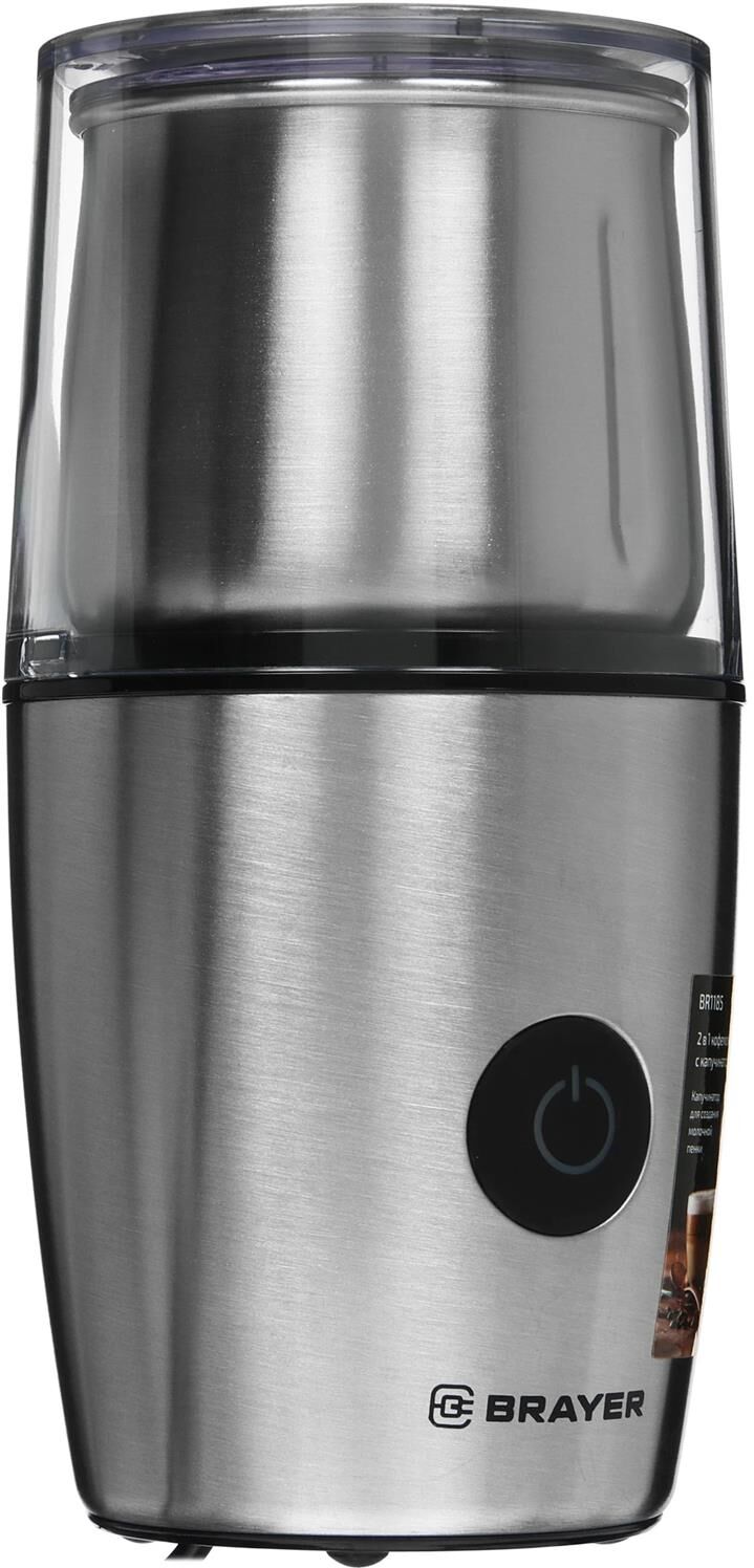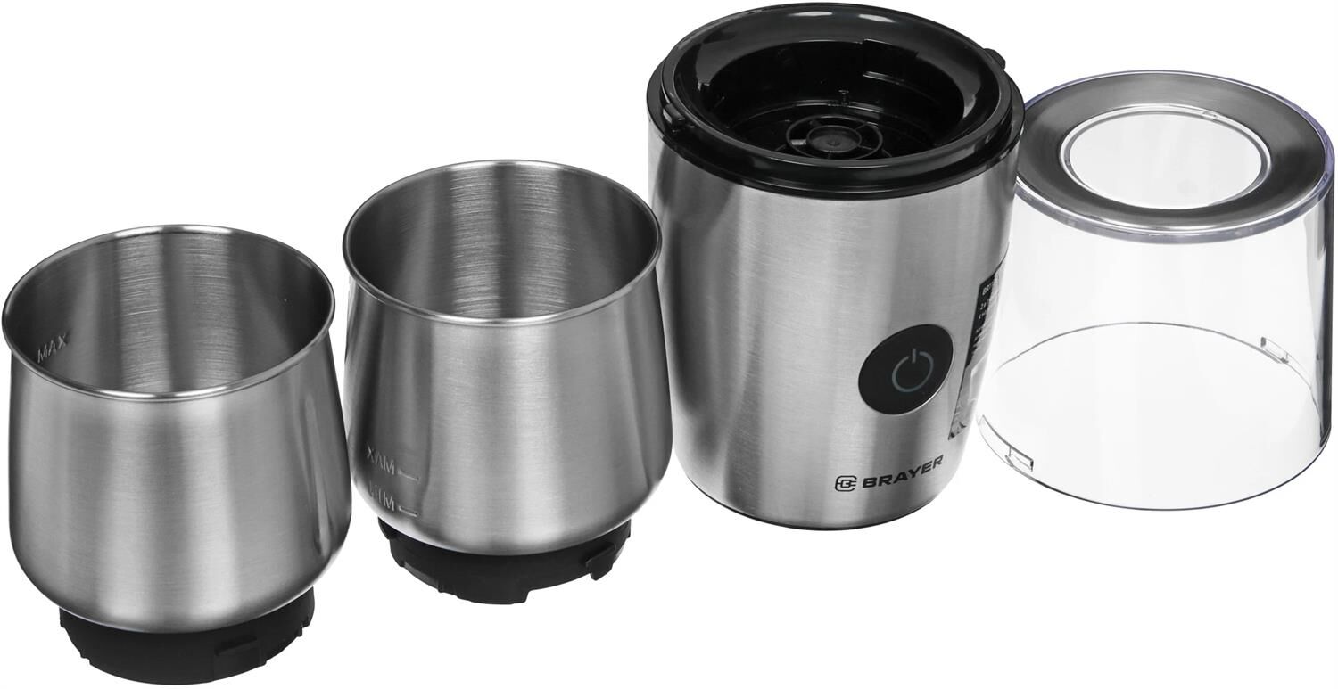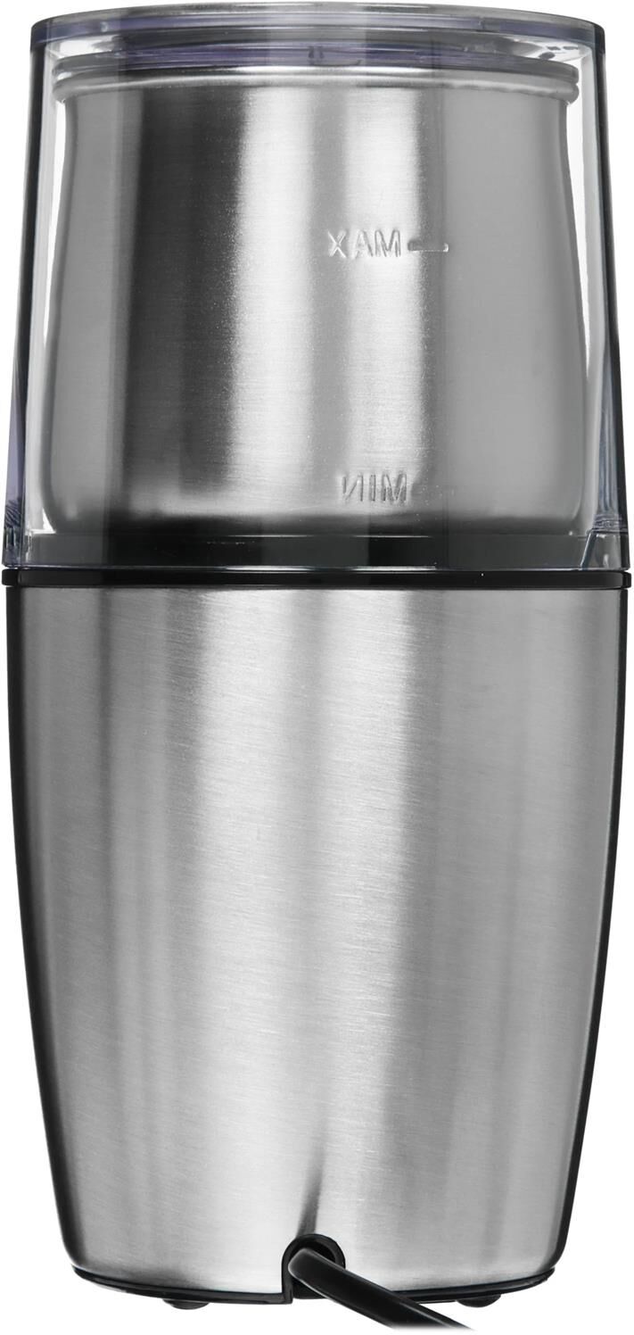 Мощность кофемолки 200 Вт Мощность капучинатора 20 Вт Емкость кофемолки 100 грамм Емкость капучинатора 140 мл Ножи из нержавеющей стали 2 чаши из нержавеющей стали Таймер (45 сек для кофемолки, 60 сек для капучинатора) Включение/выключение нажатием на кнопку