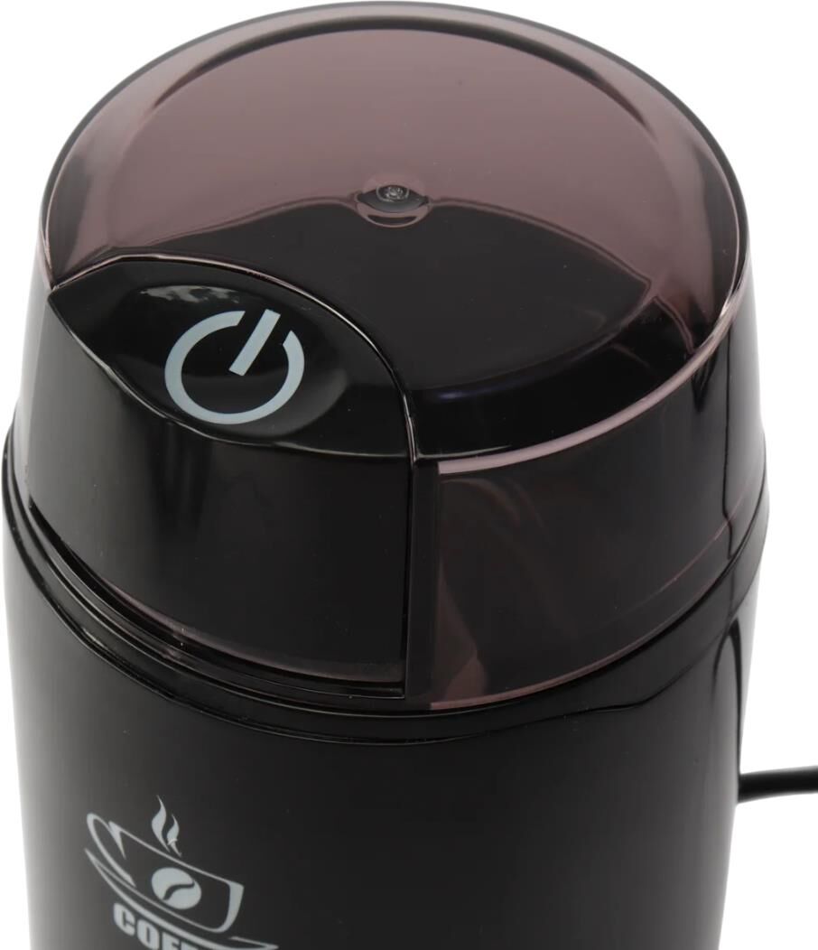 Номинальная потребляемая мощность 250 Вт. Объем 60 г. Пригодна для перемалывания кофе и специй. Нож со специальной заточкой лезвий из нержавеющей стали обеспечивает идеальный помол кофе. Режим работы: 30 секунд работы / 1 минута перерыв. Блокировка включения при снятой крышке. Цвет: черный.