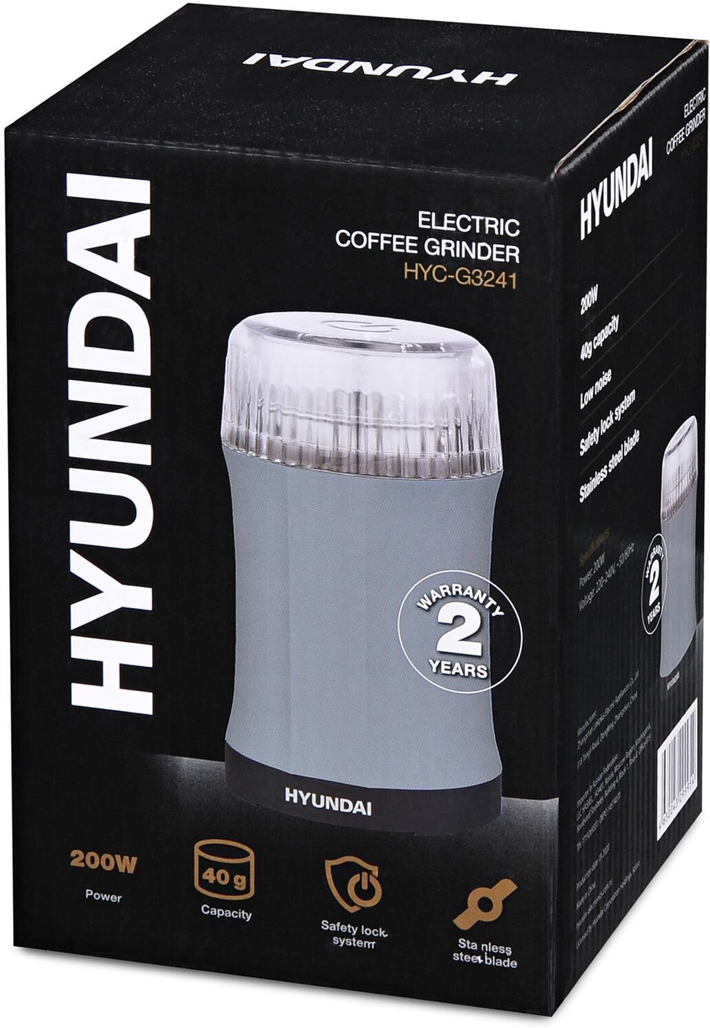 Кофемолка HYUNDAI HYC-G3241 200Вт сист.помол.:ротац.нож вместим.:40гр черный