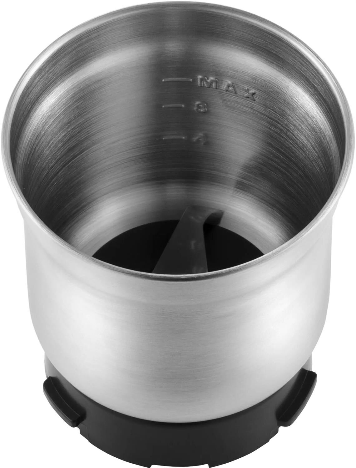 Система помола ротационный нож. Мощность 200 Вт. Вместимость 70 г. Максимальная скорость вращения 24000 об/мин. Количество степеней помола 1. Импульсный режим работы есть. Возможность помола специй есть. Длина сетевого кабеля 0.98 м. Материал корпуса нержавеющая сталь. Цвет серебристый.