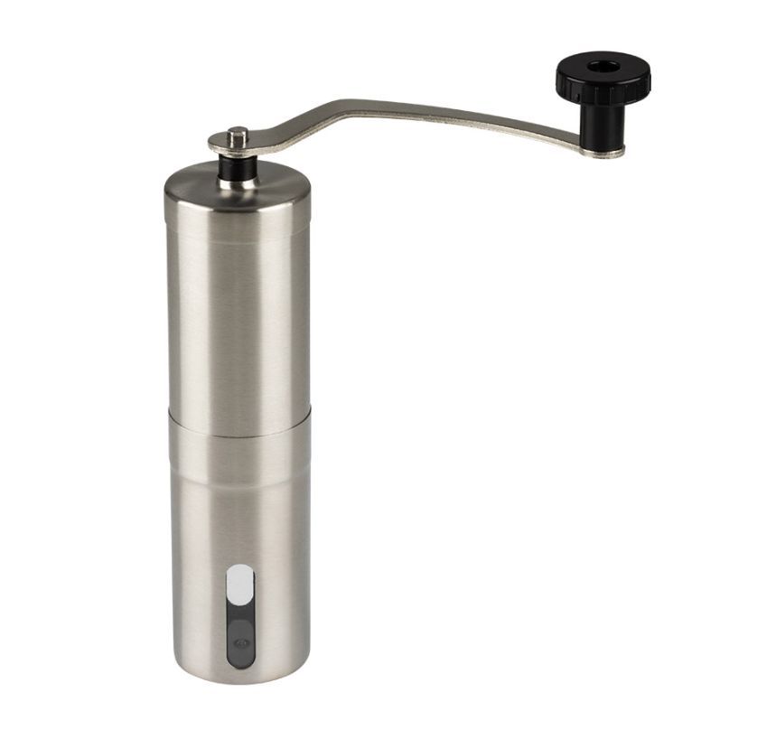 Мельница для ручного помола кофейных зерен, со съемной ручкой. серия Mulino, р-р 4,7*19 см, объем 95 мл/Толщина нерж стали — 0,4 мм. материалы — нерж ст 201/акрил/керамика, пластмасса, тм Mallony (корпус из нерж стали, жернова из грубой керамики). упаковка: пузырчатая пленка + цветная коробка. Не рекомендуется мыть в посудомоечной машине, чистить щеточкой. Регулировка степени помола.