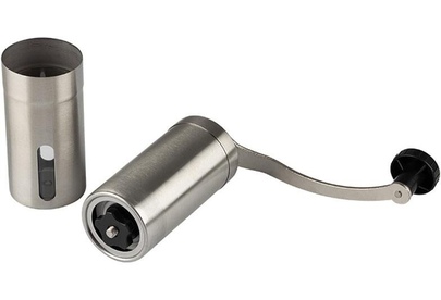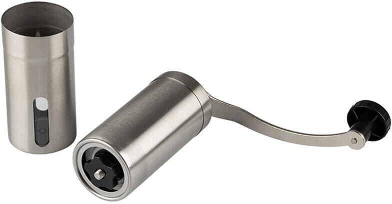 Мельница для ручного помола кофейных зерен, со съемной ручкой. серия Mulino, р-р 4,7*19 см, объем 95 мл/Толщина нерж стали — 0,4 мм. материалы — нерж ст 201/акрил/керамика, пластмасса, тм Mallony (корпус из нерж стали, жернова из грубой керамики). упаковка: пузырчатая пленка + цветная коробка. Не рекомендуется мыть в посудомоечной машине, чистить щеточкой. Регулировка степени помола.
