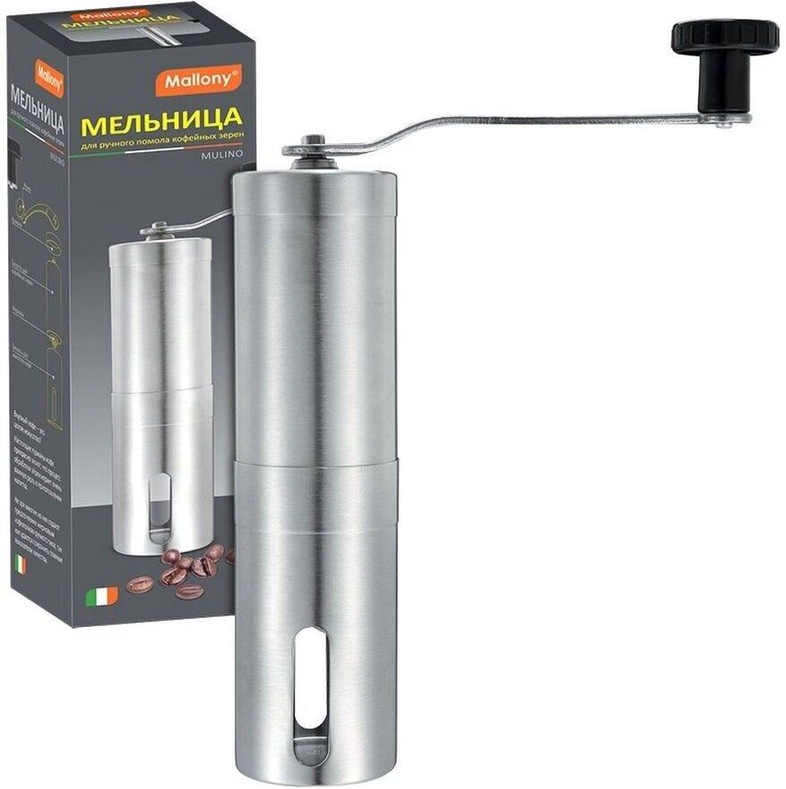 Кофемолка MALLONY Мельница для ручного помола кофейных зерен, серия Mulino, р-р 4,7*19 см, нерж сталь (004682)