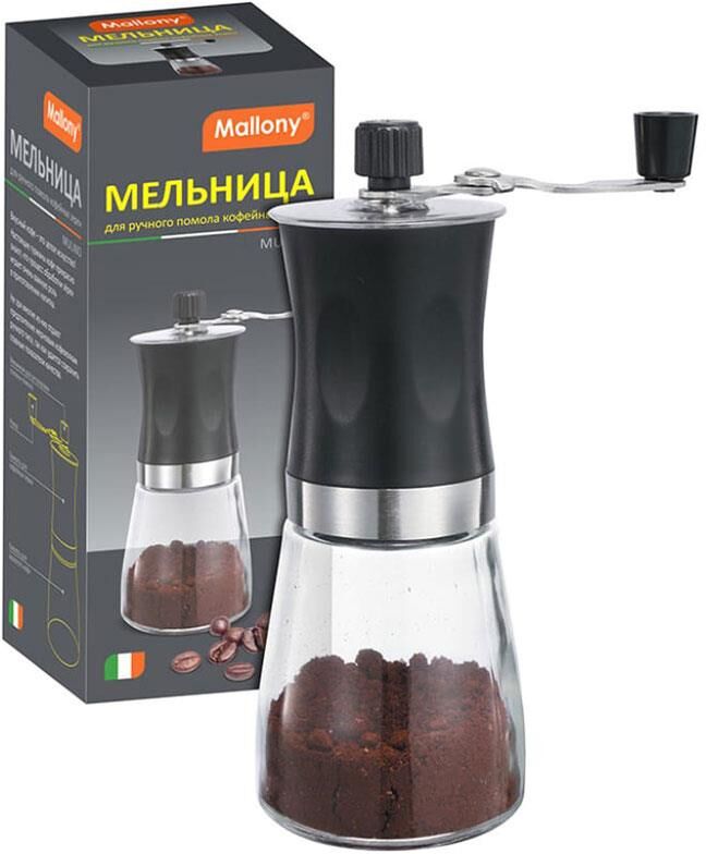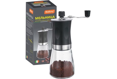 Мельница для ручного помола кофейных зерен складная ручка. Объем 170 мл. серия Mulino, р-р 6,6*18 см, ABS/стекло/керамика, тм Mallony жернова — грубая керамика. Упаковка — пузырчатая пленка + цветная коробка. Не рекомендуется мыть в посудомоечной машине, чистить щеточкой, сушить в разобранном виде. Регулировка степени помола.
