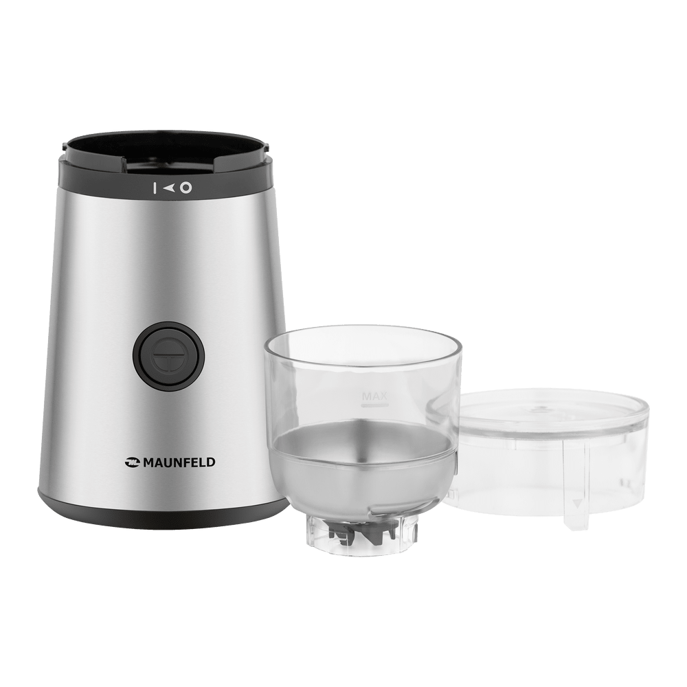 Кофемолка MAUNFELD MF-521S ывгодно отличается металлическим корпусом. Съемная чаша из нержавеющей стали легко отсоединяется от моторного отсека. Для безопасности использования предусмотрена блокировка при снятой крышке. Прорезиненные ножки позволят прибору не скользить по поверхности во время работы. Ключевые преимущества: Съемный контейнер Металлический контейнер Помол специй