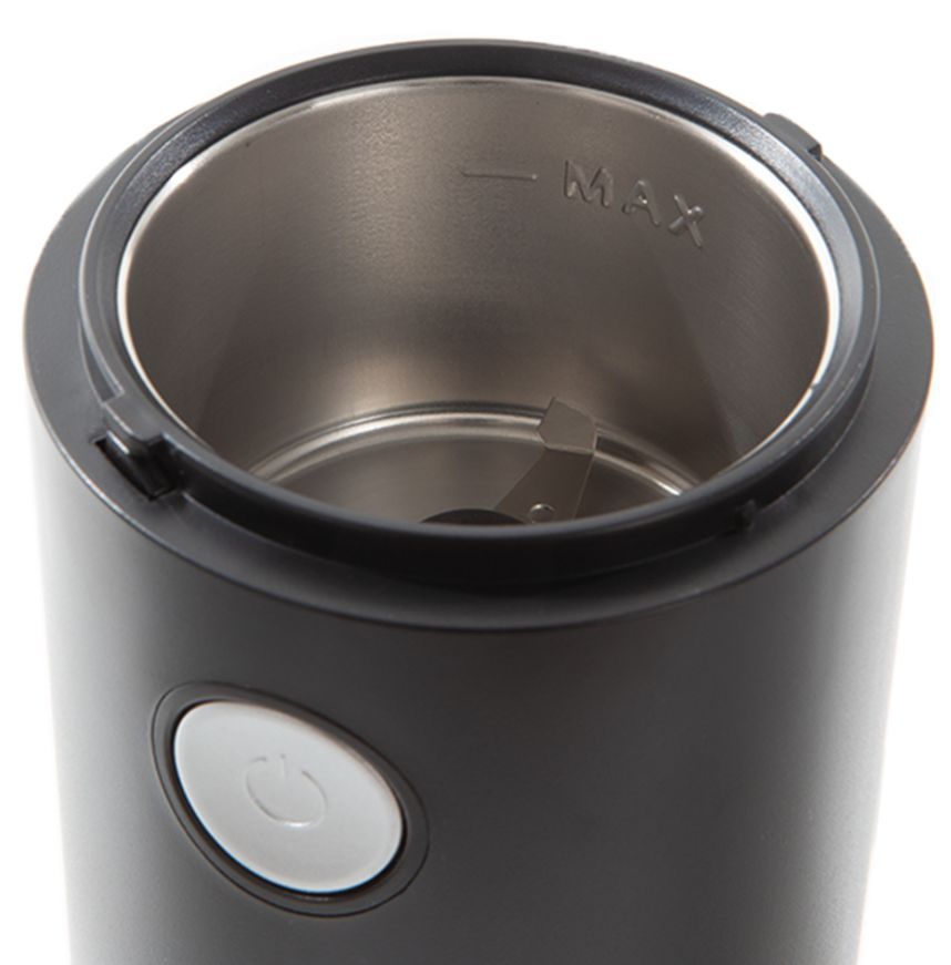 Кофемолка, максимальная мощность: 150Вт, объем резервуара для кофе 50 г, прозрачная крышка, ножи из нержавеющей стали, импульсный режим работы, отключение при снятой крышке, компактное хранение шнура в подставке