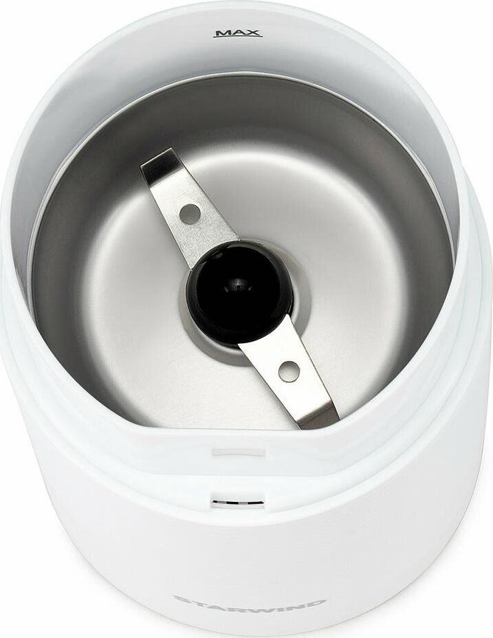 Мощность 200 Вт Система помола ротационный нож Вместимость 70 г Импульсный режим работы Материал корпуса пластик Цвет белый Срок гарантии12 мес.