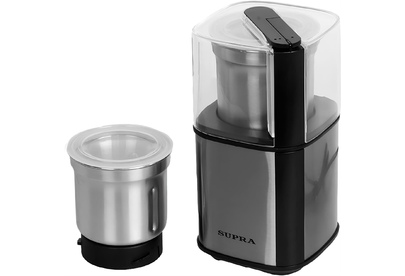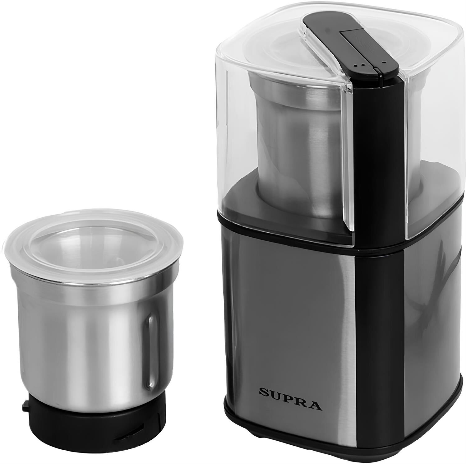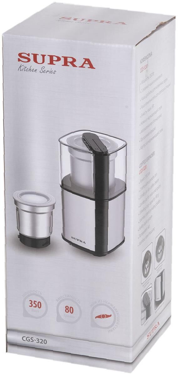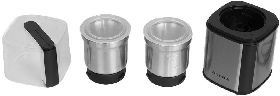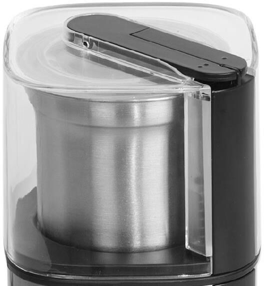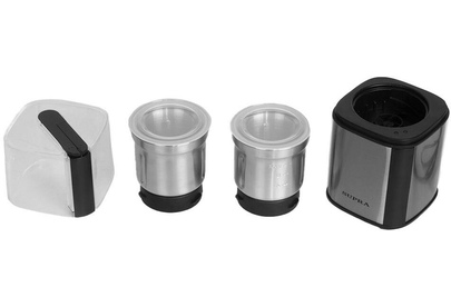 Кофемолка- измельчитель с дополнительной чашей.Корпус из нержавеющей стали. Мощность 300 Вт. Вместимость 80г . Импульсный режим работы. Нож из нержавеющей стали. Автоматическая блокировка. Прозрачная крышка